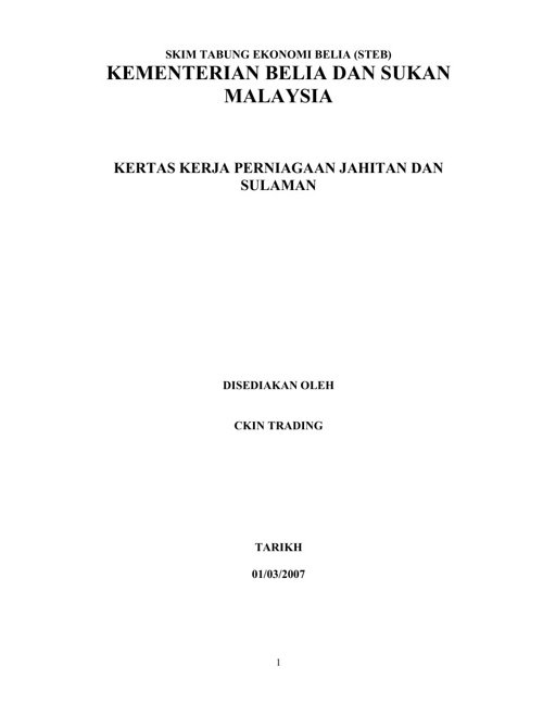 Dengan dana ini juga ia akan menjadi pemangkin kepada peningkatan ekonomi usahawan FELDA di kawasan rancangan FELDA. Skim tabung ekonomi belia steb kementerian belia dan sukan malaysia kertas kerja perniagaan jahitan dan sulaman disediakan oleh ckin trading tarikh 01032007 1 2. Tabung Ekonomi Belia diletakkan di bawah Kumpulan Wang Amanah Ekonomi Belia dan diuruskan oleh Kementerian Belia dan Sukan.
